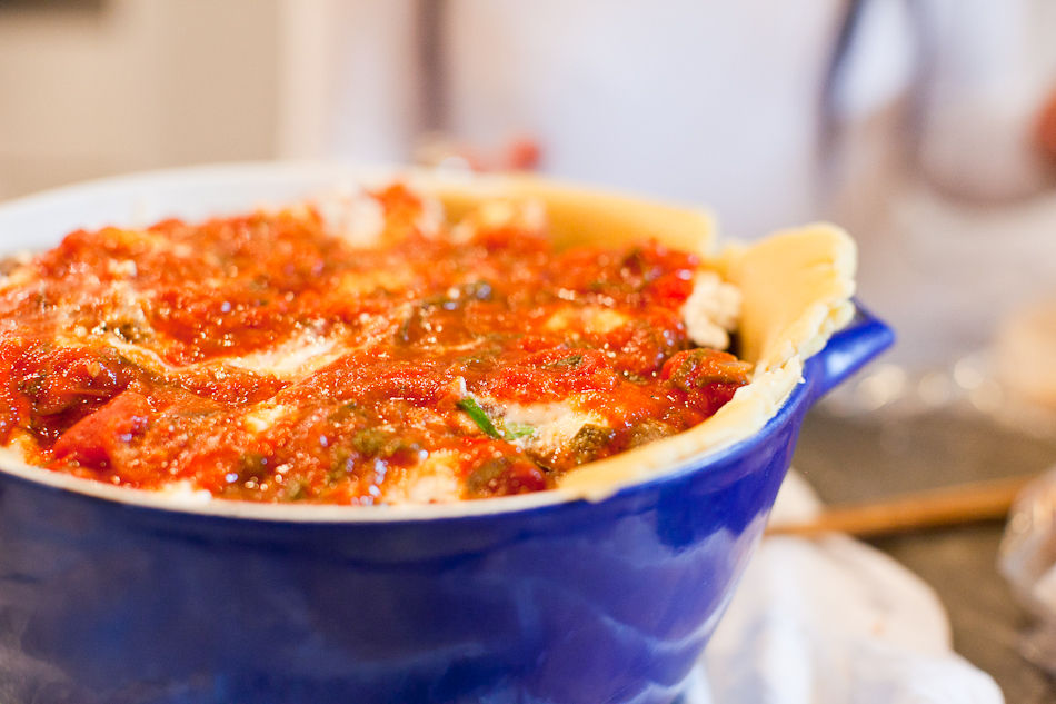 So technically its made of Italian dishes, but whats more American than taking every single Italian dish you can think of and stuffing it in a pie crust to make one delicious monstrosity?