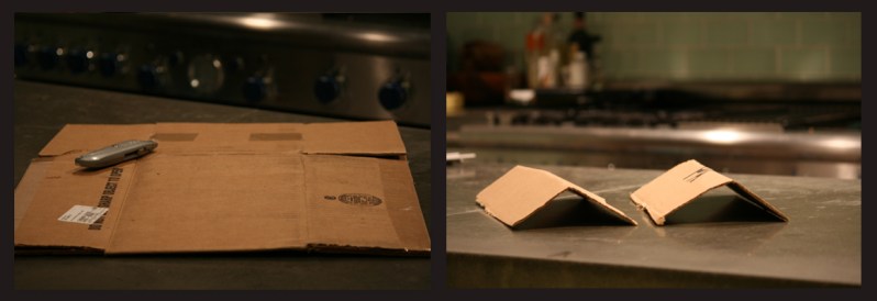 Cut a piece of cardboard out about 6-8 inches wide. The height will depend on the height of the boot shaft. I like to cut it about 4 inches shorter than the top of the opening. Bend cardboard in half vertically and insert into shaft.